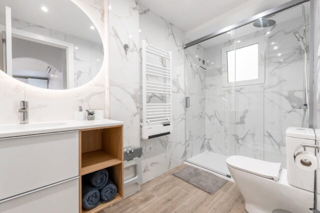 • Elegancka łazienka: Kabina prysznicowa typu walk-in, wysokiej jakości wyposażenie i stylowy, funkcjonalny układ.