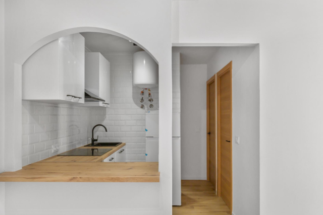 Oferuje 2 sypialnie, salon z jadalnią i balkonem, częściowo wyposażoną kuchnię oraz w pełni odnowioną łazienkę z nowoczesną umywalką. Mieszkanie sprzedawane jest bez mebli, co daje swobodę aranżacji.