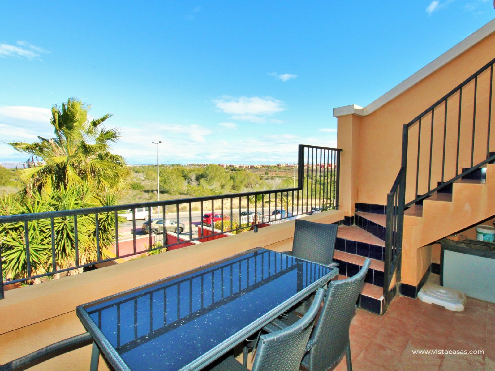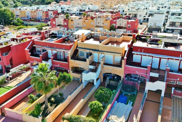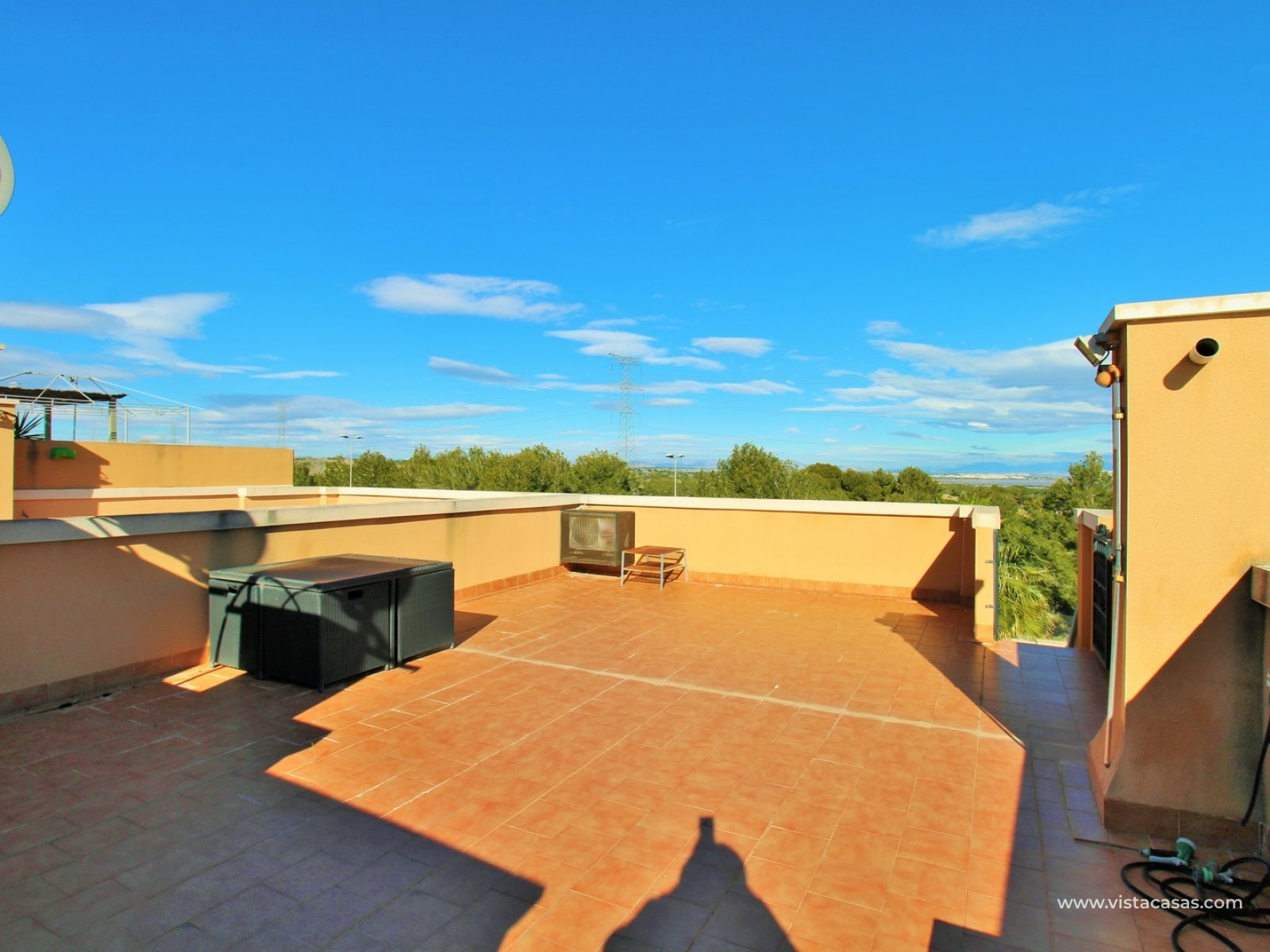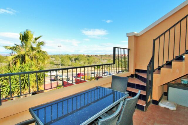 Nieruchomość oferuje jasny salon z jadalnią z wyjściem na balkon, oddzielną, w pełni wyposażoną kuchnię, dwie sypialnie i rodzinną łazienkę. Z balkonu schody prowadzą na duży, prywatny taras na dachu, oferujący mnóstwo miejsca do opalania, rozrywki lub relaksu z widokiem na słone jeziora Torrevieja.