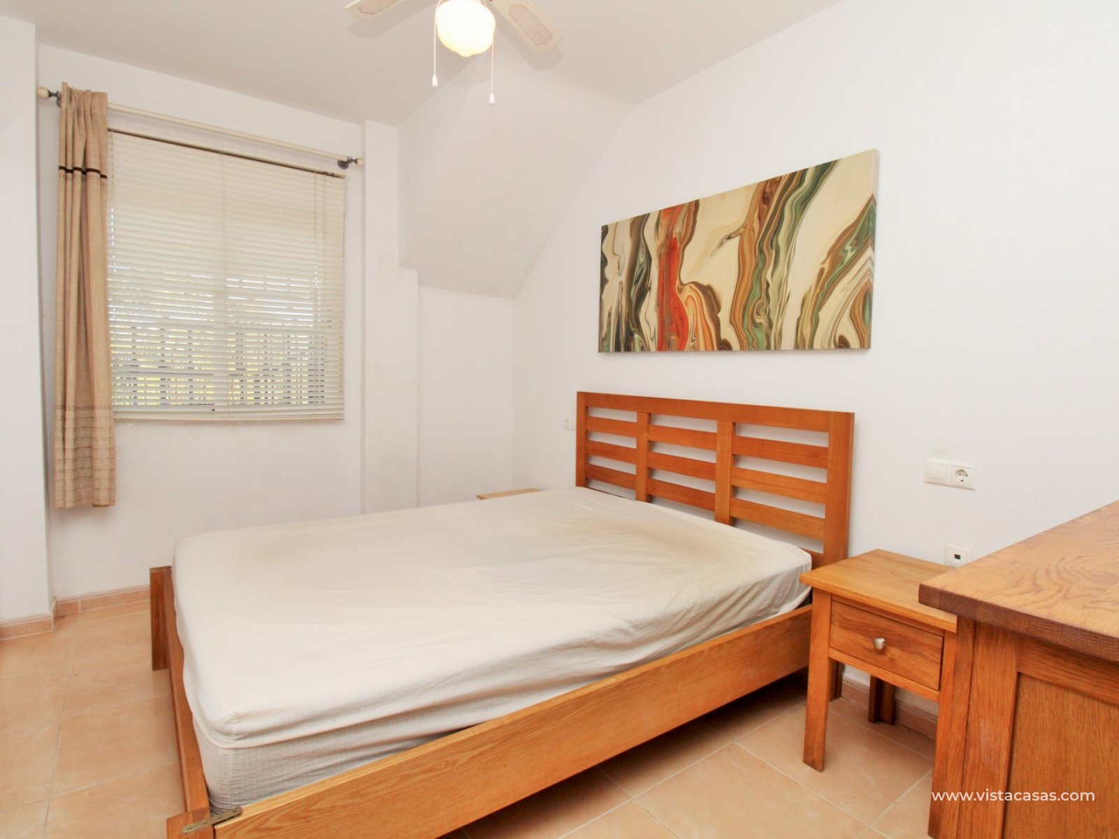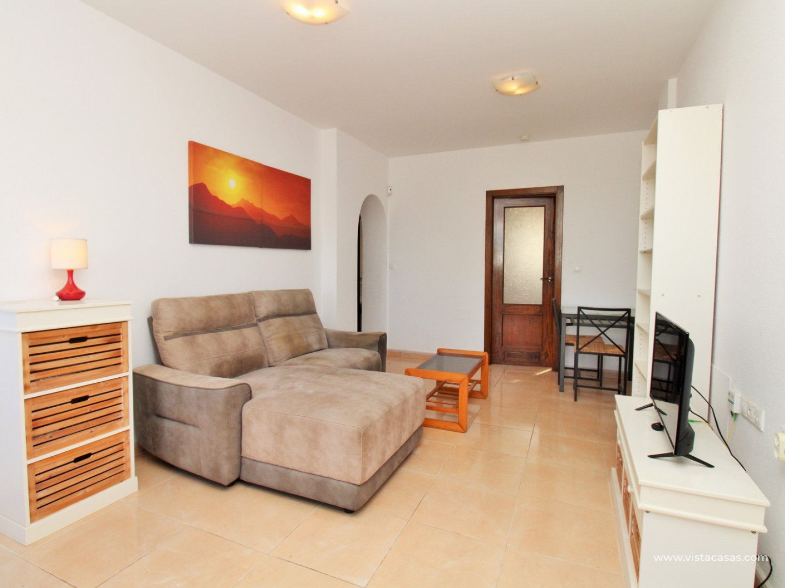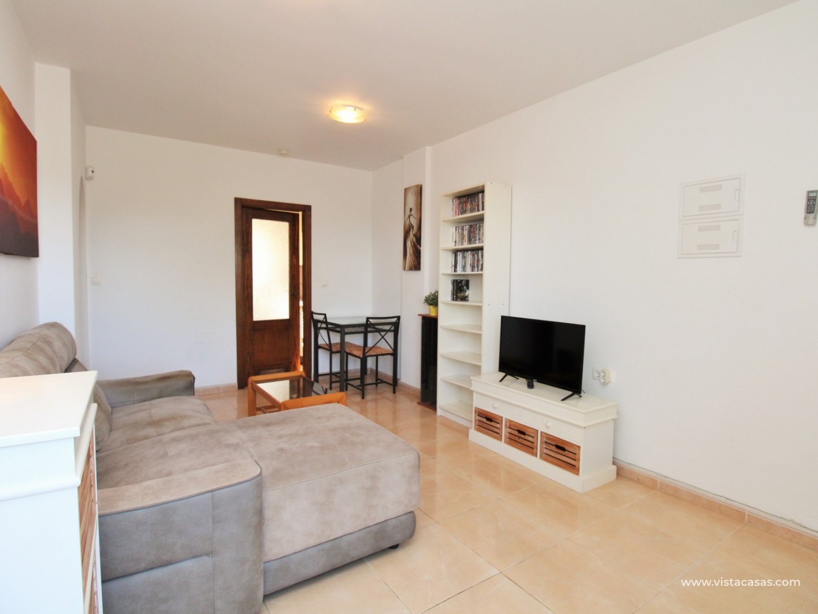 Nieruchomość oferuje jasny salon z jadalnią z wyjściem na balkon, oddzielną, w pełni wyposażoną kuchnię, dwie sypialnie i rodzinną łazienkę. Z balkonu schody prowadzą na duży, prywatny taras na dachu, oferujący mnóstwo miejsca do opalania, rozrywki lub relaksu z widokiem na słone jeziora Torrevieja.